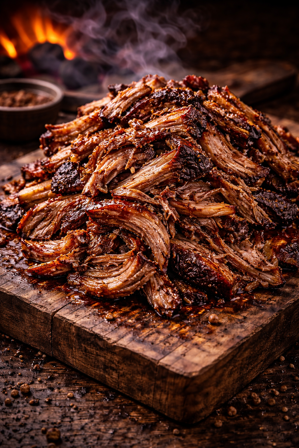 Ici, le porc effiloché ne fait pas semblant. Il sort du fumoir avec du feu, du jus et du caractère. 🔥